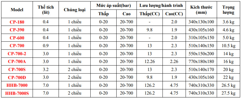 + Thông tin chi tiết về Bơm tay kích thủy lực 1 chiều CP-700-2( 3 lít)