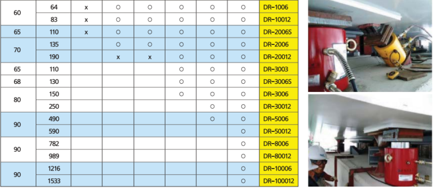 + Kích thủy lực với tải trọng nâng thấp nhất là 2 tấn lớn nhất có thể lên tới 1.100 tấn/1 kích.