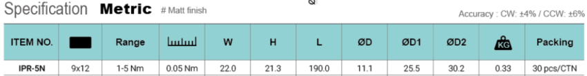 -Thông số chính của cờ lê lực đầu mỏ lết như sau :