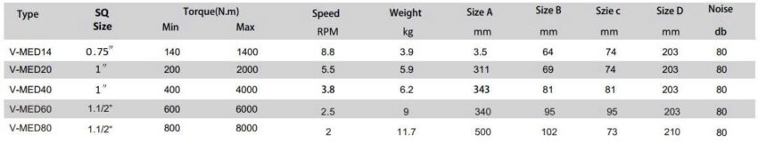 *Thông số kỹ thuật của súng siết bulong Wren V-MED60 như sau:
