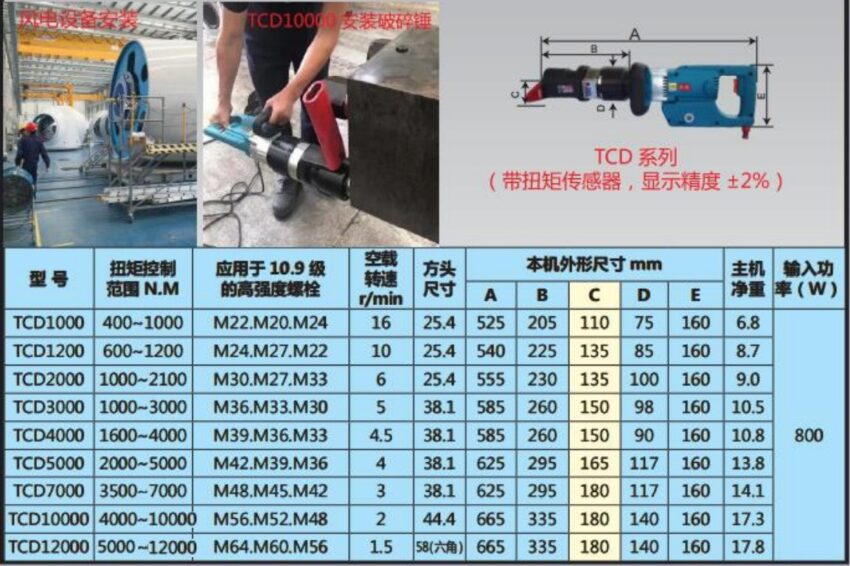 *Thông số kỹ thuật của súng siết bulong hiển thị Huxiao TCD1200 như sau:
